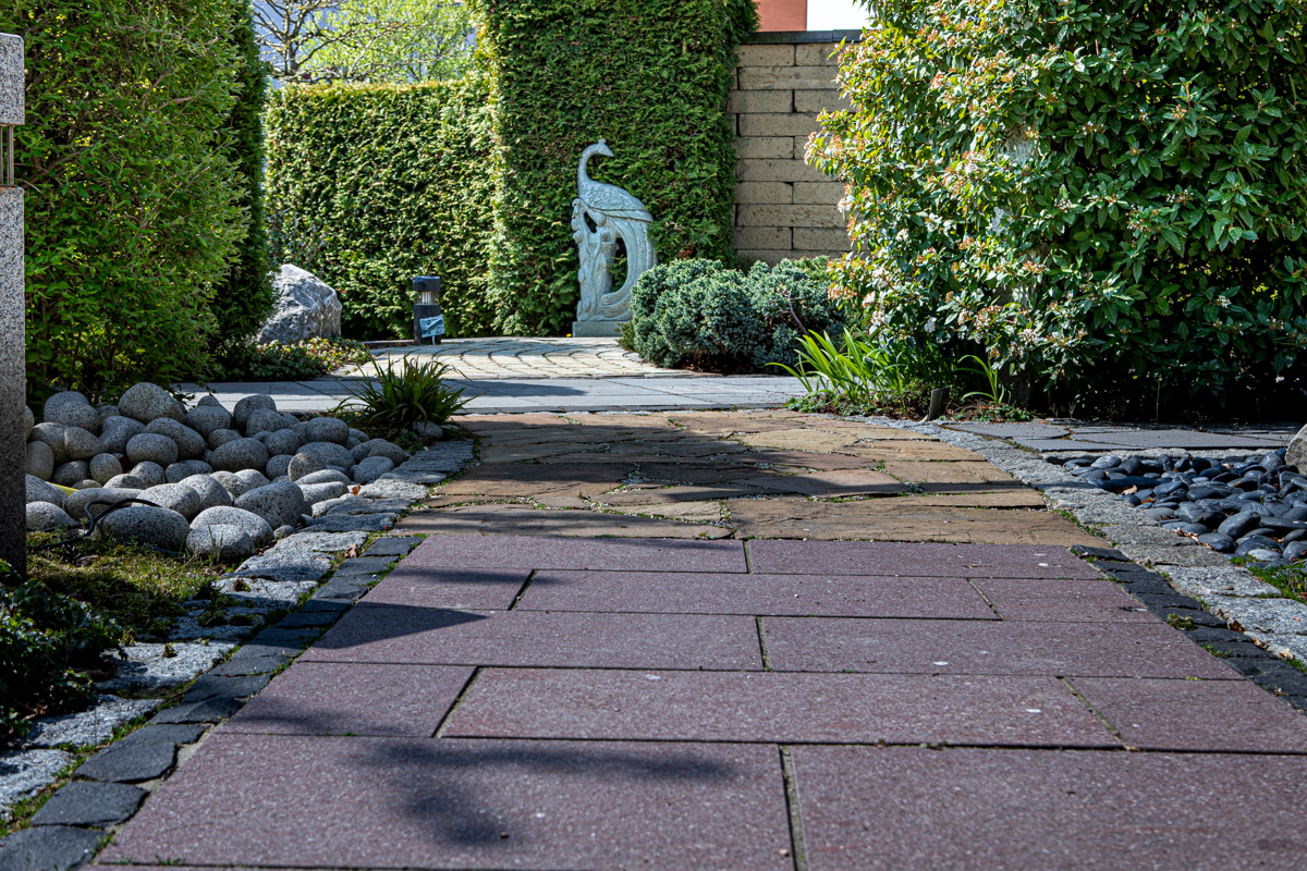 Ganz gleich, ob naturbelassene, geflammte oder geschliffene Oberfläche: Die Verlegung von Natursteinbodenplatten geht aufgrund von festgelegten Abmessungen einfach und rasch von der Hand. Es ist auch möglich, verschiedene Gesteinsarten zu kombinieren. So können Sie ganz nach Ihrem Geschmack Ihren individuellen Außenbereich mit Natursteinen aus der ganzen Welt gestalten. Wir beraten Sie gerne.