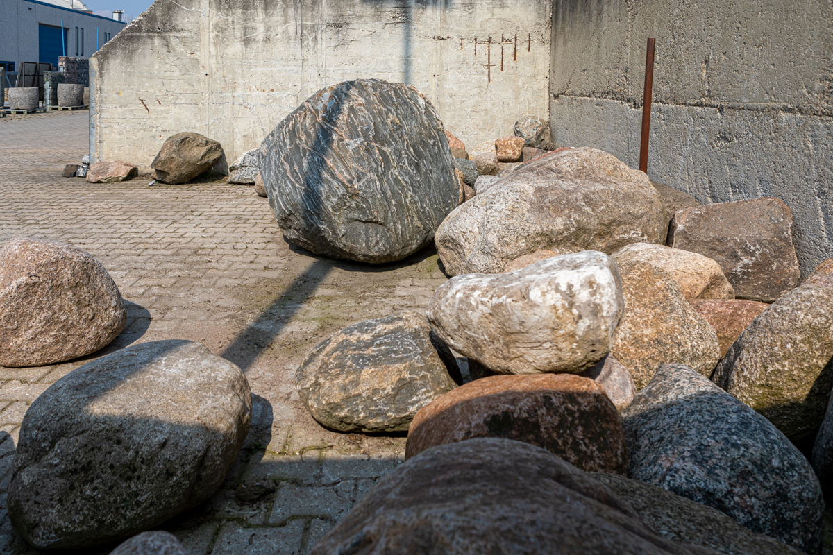 In unserem Natursteinhandel in Selfkant-Tüddern finden Sie eine Auswahl an Findlingen und Felsen aus Granit, Kalkstein, Basalt, Quarz oder Schiefer. Wir haben ständig ein großes Sortiment aus verschiedenen Natursteinen, Größen und Farben lagernd. Besuchen Sie gerne unsere Ausstellung. Wir nehmen uns Zeit und beraten Sie fachkundig.